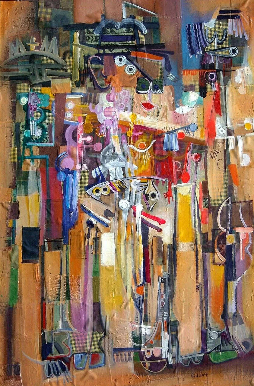 The multiplanic juxtapositions that he armed as discourses associated with his collage-creations, derive from an analytical cubism, planned and revolving cubism, without emphasizing spatial depth, because he and his pictorial temperament are not interested in emptiness and nothingness; he is interested in feeling the echo of the inheritance, the resonance of the myth of the mystical power of love as a mysterious substance for coexistence and pleasure, or the miracle of the creation of life. It is the reason why many of these themes are so punctual in the symbolic geography of his paintings.